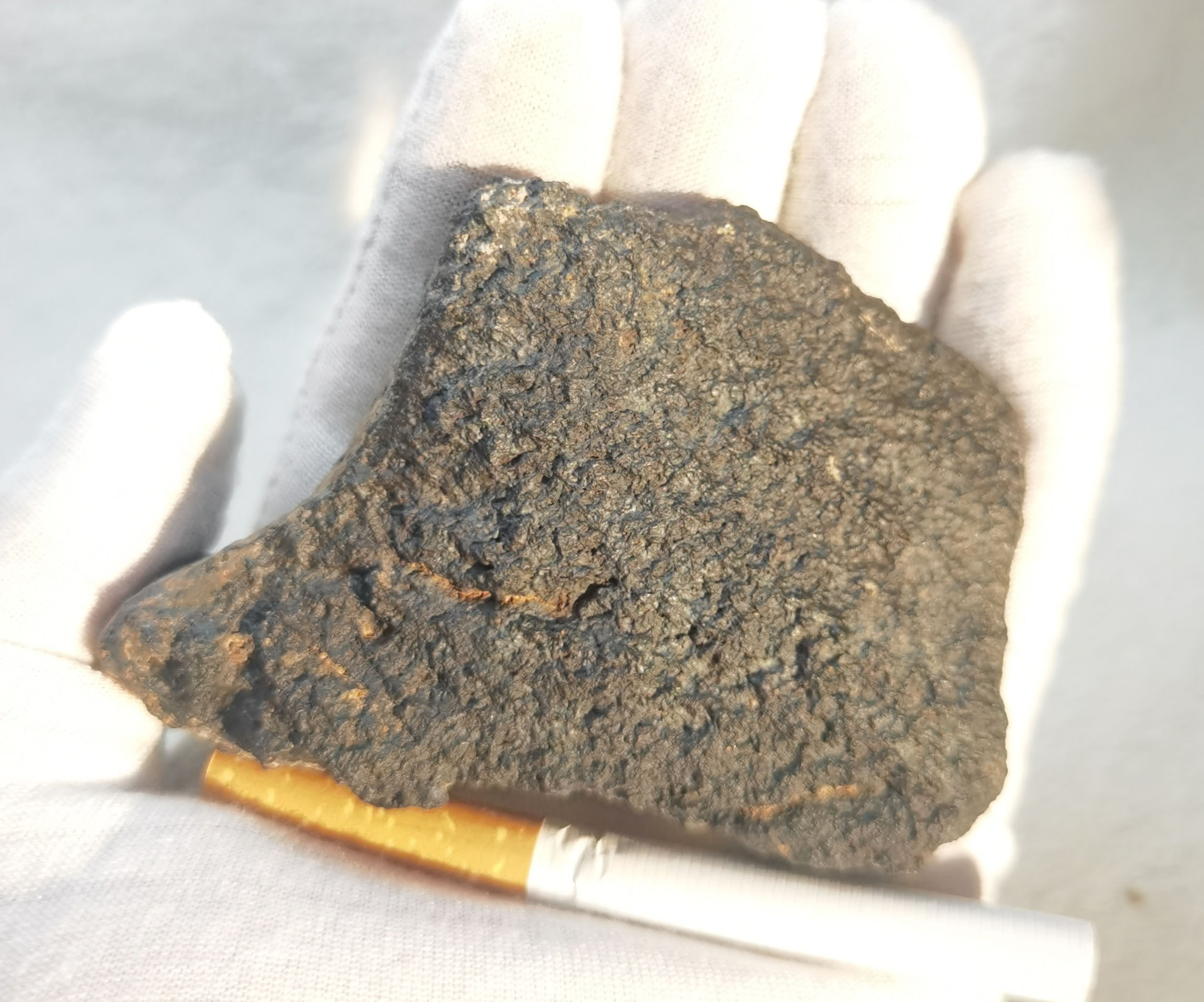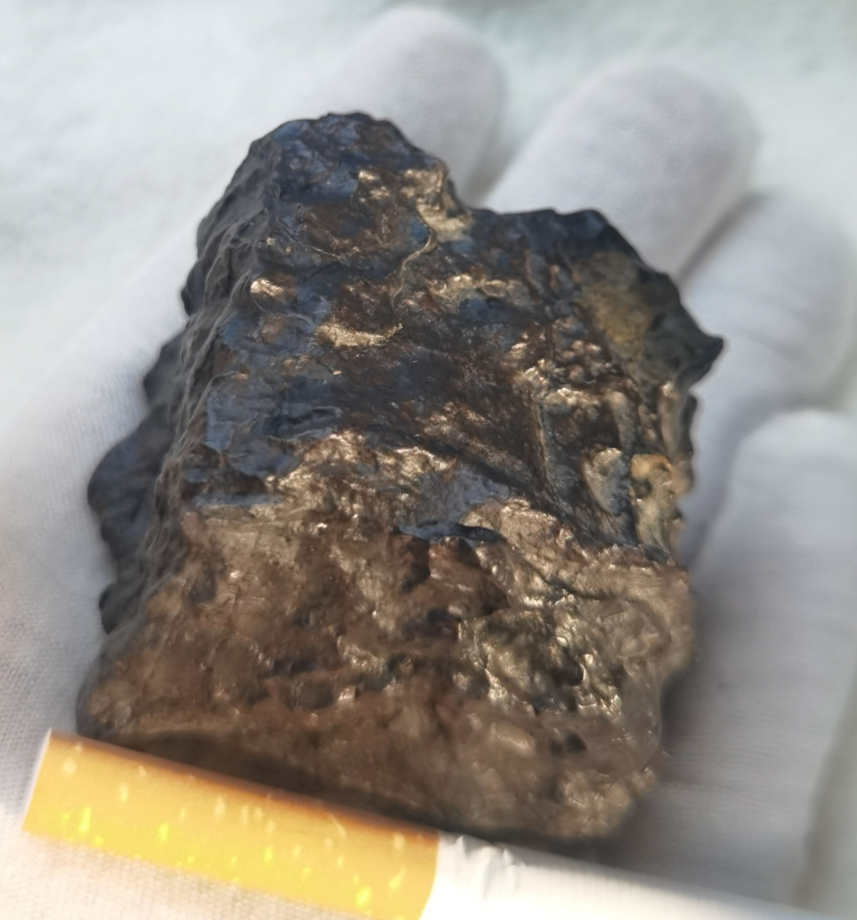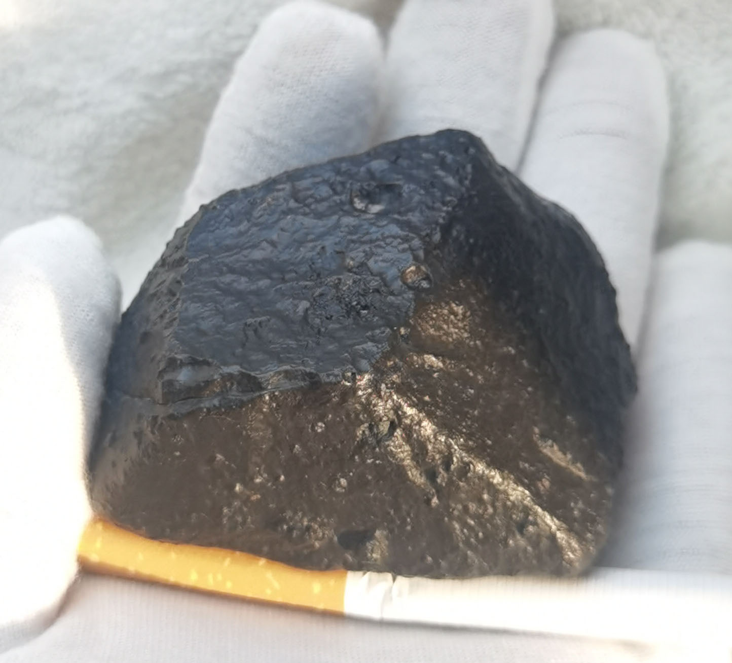 这是一块碳质球粒陨石:重量130克,5厘米大小,黑色,非常规则的形状,具有陨石全部特征。表面的熔壳和气印清晰细腻,具有极高的收藏价值。这块陨石由曹*小姐所有,电话号码182****5017点击看详图